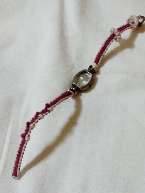 いつも使っていた時計のベルトがついに切れまして、よっしゃ!とヘンプで編んでみました。