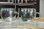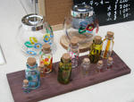 ガラスの小瓶に専用ペンで色を着けた物ですが、光を通すとステンドグラスみたいに影が出来てとってもいい感じ!