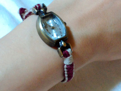 いつも使っていた時計のベルトがついに切れまして、よっしゃ!とヘンプで編んでみました。